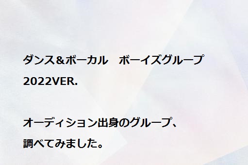 ダンス&ボーカルボーイズグループ 2022年ver.